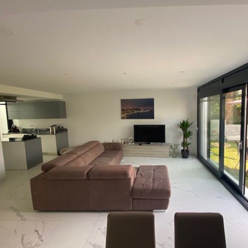 Piano terra: ampio living room con cucina a vista, una grande camera multiuso, un bagno, locale lavanderia privata, ripostiglio.